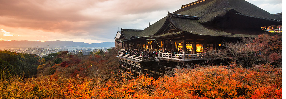 In the afternoon, board a local bus to the base of Kiyomizu Dera Temple. Walk up this attractive winding road lined with colourful souvenir and craft shops. Kiyomizu Dera is famous for its giant wooden stage overlooking panoramic views of Kyoto and its main hall purely constructed of wood and sustained by huge columns and beams without the use of a single nail, screw or bolt.